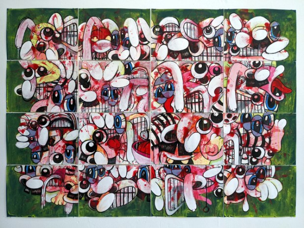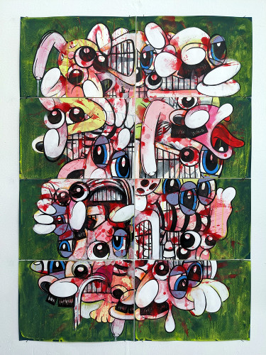 Modular Painting Experiment, 16 A3 panels (dim. variable), Indian ink and paint on heavy watercolour paper, 2022