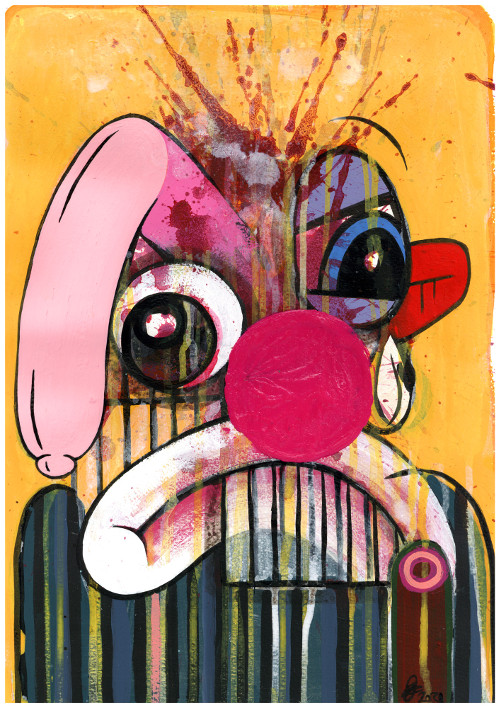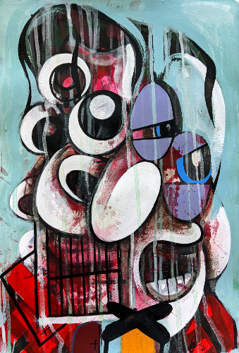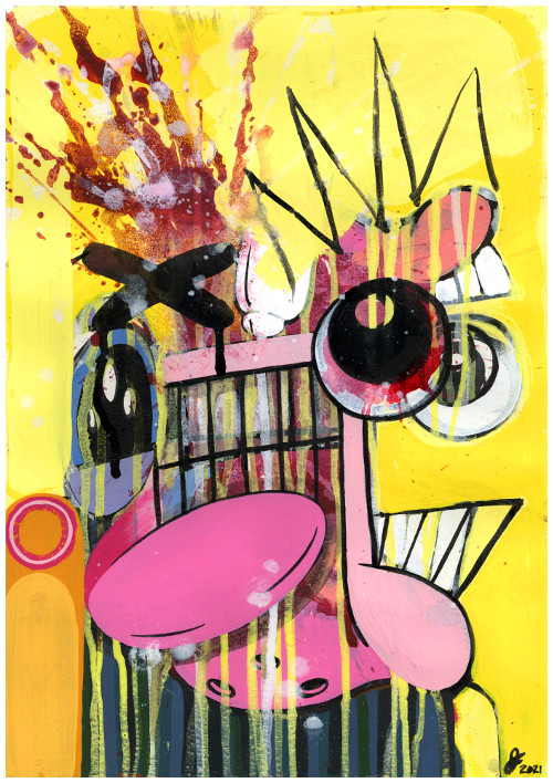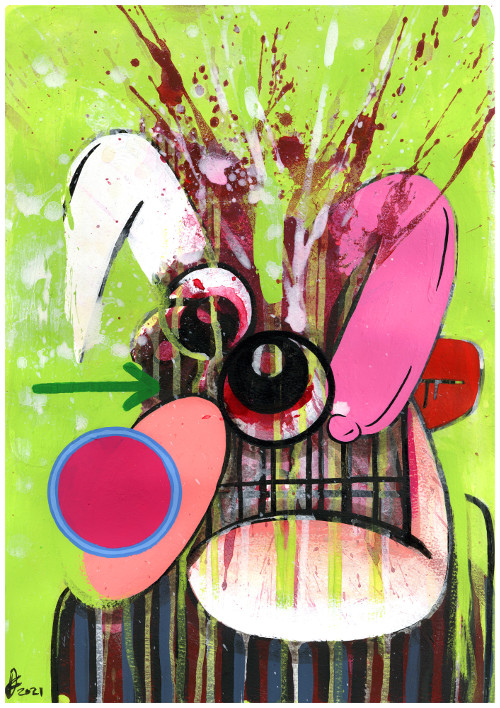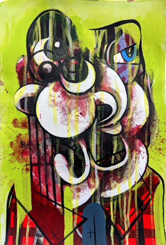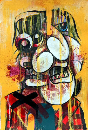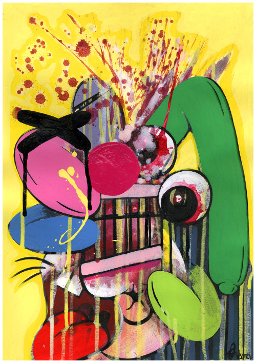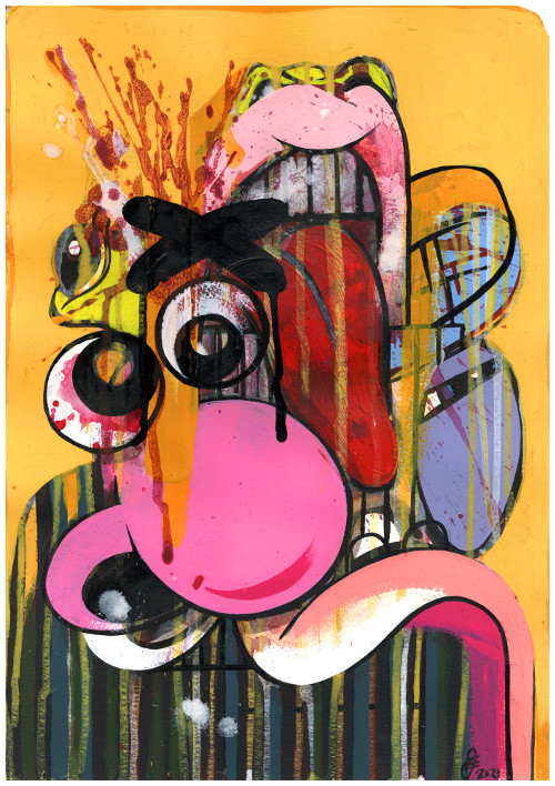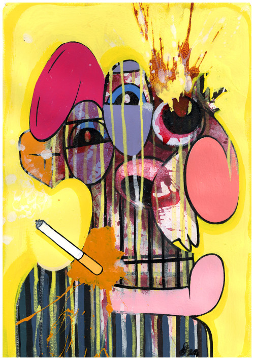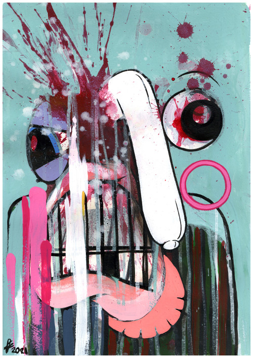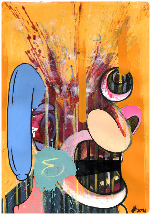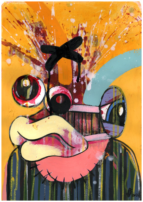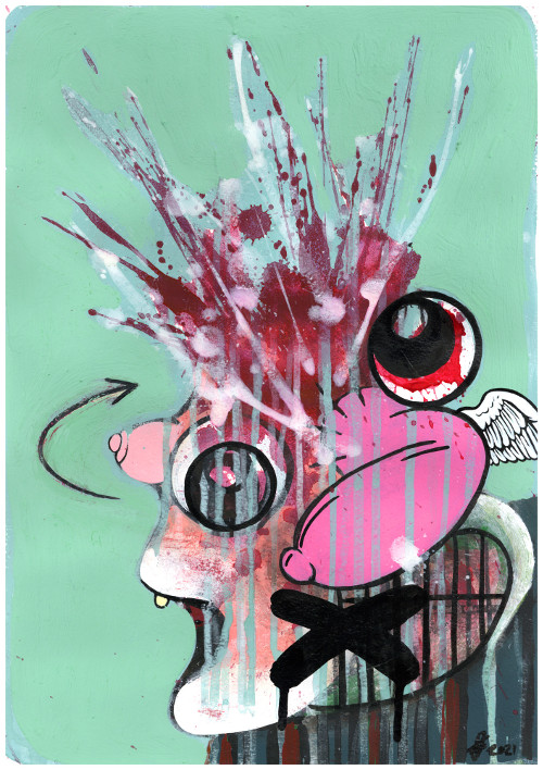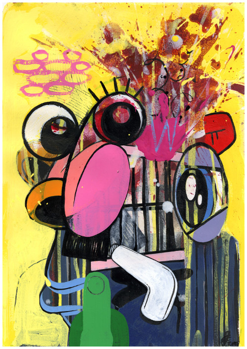 Exploding Heads 2.0, paint and ink on heavy watercolour paper, 42cm x 30cm, 2021